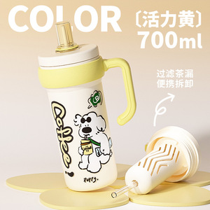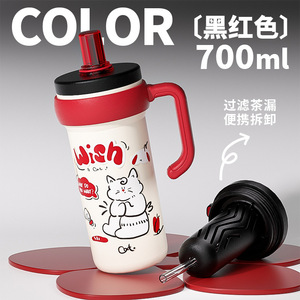 700ML大容量带手柄咖啡杯 女士办公室保温保冷吸管水杯商务礼品杯