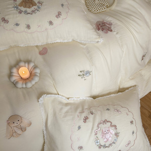 少女心可爱兔兔100%全棉纯棉四件套全棉刺绣卡通三件套床上用品++