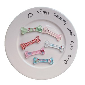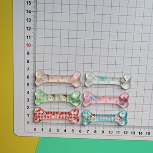 新款可爱透色印花猫咪骨头发夹配件DIY鞋花贴收纳盒发饰饰品材料