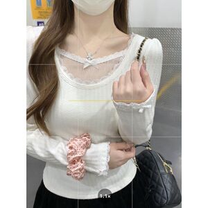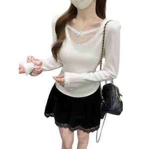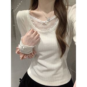 辣妹纯欲风蝴蝶结白色蕾丝打底衫女2025年春秋新款小众设计感上衣