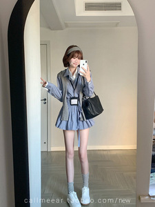 CallmeEar//【假两件衬衫裙】学院风衬衫裙秋系带收腰A字连衣裙