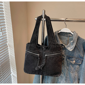 跨境新款女士托特包牛仔布多隔层大容量简约单肩斜挎日常现货直发