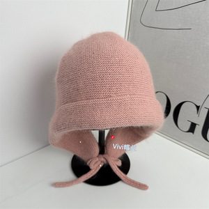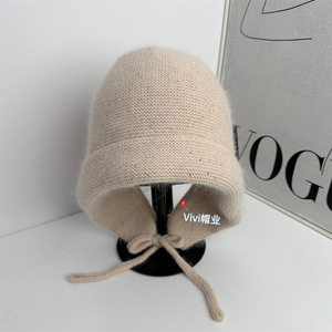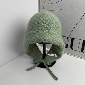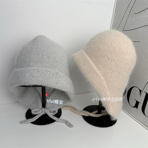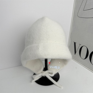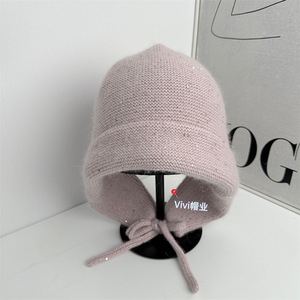 俄罗斯寒冷兔毛保暖毛线帽冬季加厚双层软糯护耳帽亮片系带针织帽