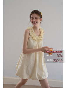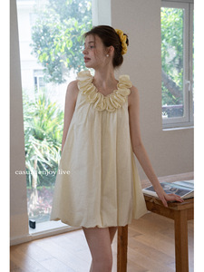 EGGKA立体花边领蓬蓬连衣裙女夏度假风无袖圆领气质显瘦花苞短裙