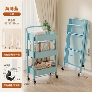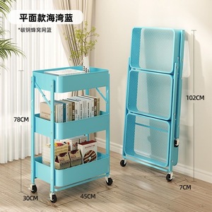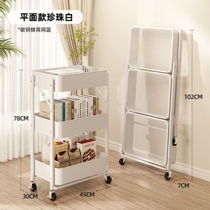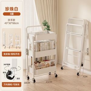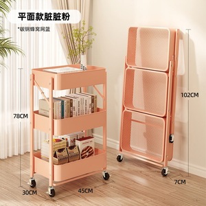 碳钢纯色折叠小推车免安装厨房收纳置物架落地卫生间移动收纳架