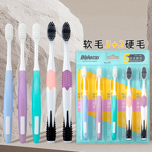 日式小头软毛硬毛搭配高级牙刷5支家庭装 成人家用护龈牙刷批发