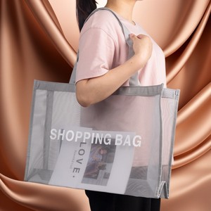 现货批发大容量黑色网眼购物袋服装尼龙网眼沙滩包尼龙网纱袋logo