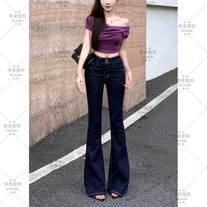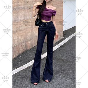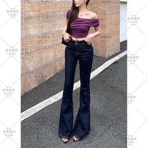原牛丹宁蓝丰胯微喇牛仔裤女2025年夏季新款高腰紧身提臀喇叭长裤