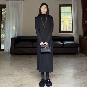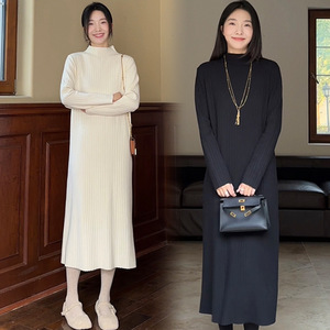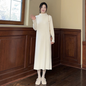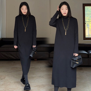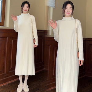 孕妇装新款简约秋冬直筒宽松半高领毛衣针织连衣裙百搭显瘦打底裙
