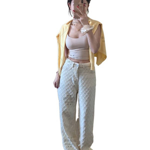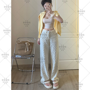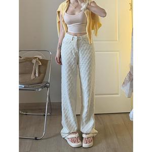 白色宽松菱格小香阔腿牛仔裤女2025年夏季新款高腰显瘦休闲阔腿裤