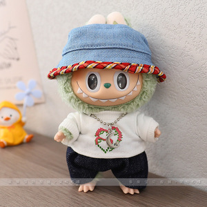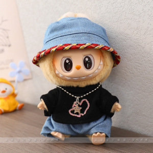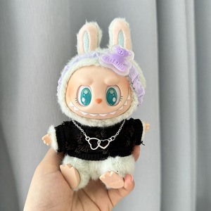 17cm拉布布Labubu公仔校园衣服心动马卡龙搪胶脸娃衣换装着替