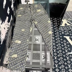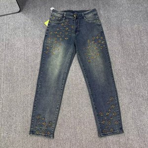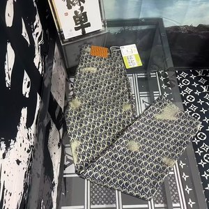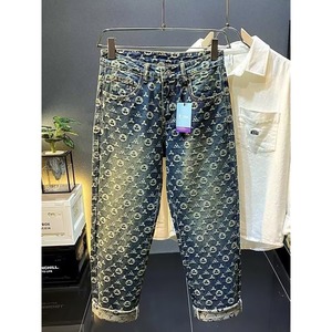 跨境新款潮牌网红提花休闲满印牛仔裤修身同款直筒男士休闲长裤子