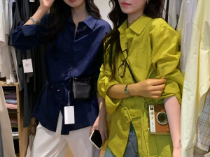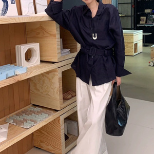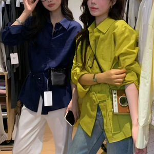 气质收腰韩系设计感衬衫春夏季宽松显瘦休闲女上衣配腰带