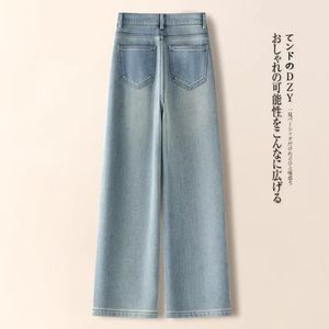 今年流行浅蓝色阔腿牛仔裤女2025春季新款高腰复古显瘦宽松直筒裤