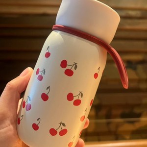 新款轻奢儿童便携小容量350ml樱桃图案小熊迷你口袋杯直杯保温杯