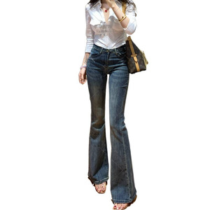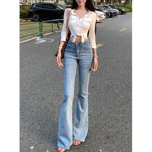 高腰线条刺绣微喇牛仔裤女2025年秋季新款设计感显瘦弹力喇叭长裤