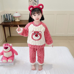 女童儿童法兰绒睡衣宝宝保暖可爱加厚家居服秋冬卡通新款珊瑚套装