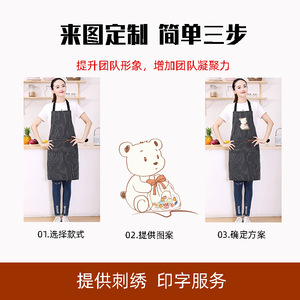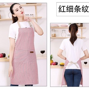 夏季薄款棉麻条纹挂脖围裙厨房咖啡店烘培工作服围裙可印logo