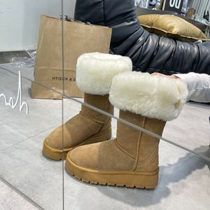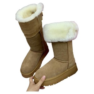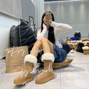 PRUGGI冬季牛皮羊毛雪地靴女两穿外翻千颂伊厚底增高棉鞋轻便防滑