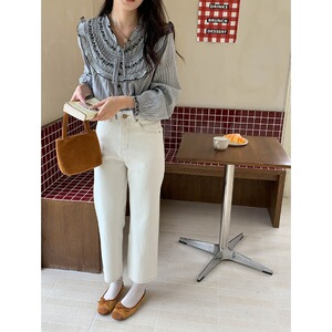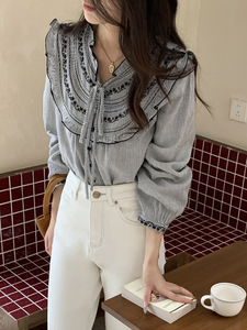 3th Morning 早秋新款 法式木耳边系带条纹设计感衬衫ZY3188