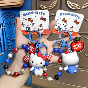 正版红蓝白珠链钥匙扣凯蒂猫书包汽车挂件可爱卡通KT猫礼物饰品女