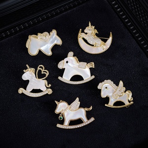 天然贝壳立体生肖小马胸针小众动物衣服别针卡通独角兽胸花配饰