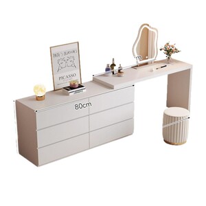 奶油风书桌可伸缩化妆桌梳妆台卧室现代简约斗柜一体小户型收纳柜