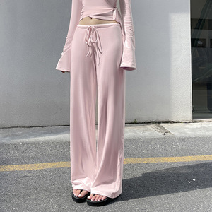 2025秋冬欧美休闲系带喇叭袖上衣加绒宽松长裤睡衣两件套运动套装