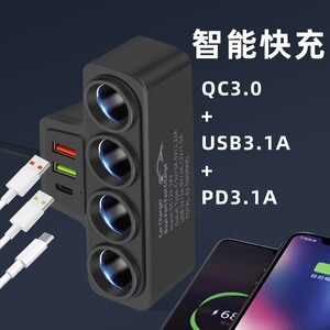 一拖四点烟器带超级快充车载充电器(QC3.0+PD)