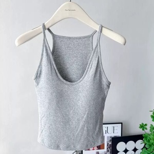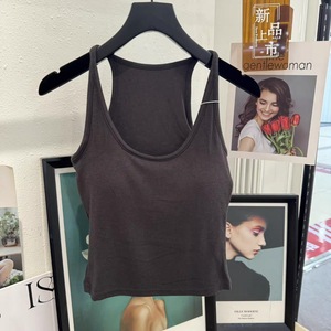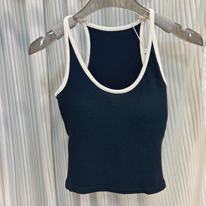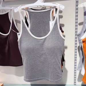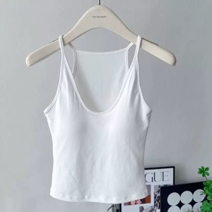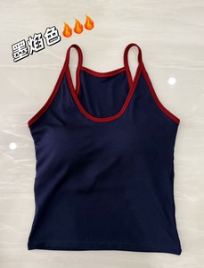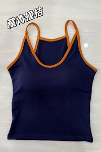 辣妹螺纹棉撞色挂脖吊带工字型背心女带胸垫美背修身内搭外穿上衣