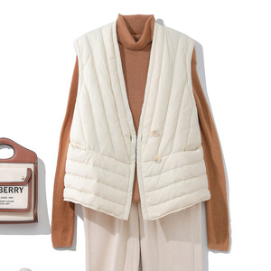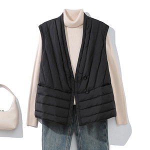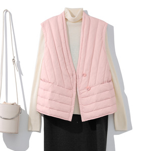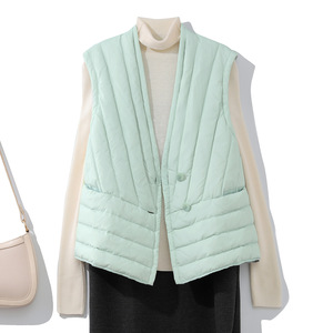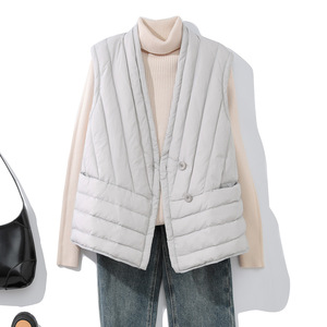 2025年秋冬新款轻薄款羽绒马甲女短款V领内胆显瘦保暖白鸭绒马夹