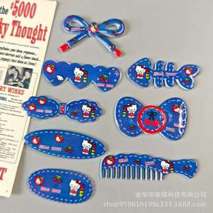 2025新款牛仔色蝴蝶结鱼骨梳子饰品配件diy发饰手机壳鞋花配饰