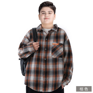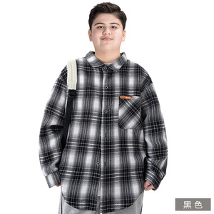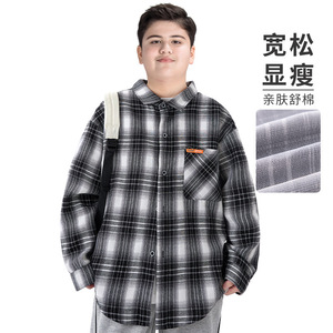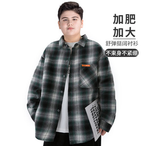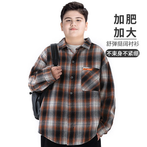胖童装男童格子长袖衬衫加肥加大春秋装2025新款中大童衬衣初中生