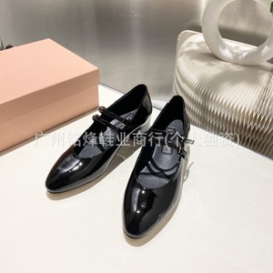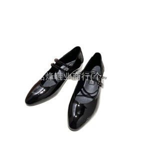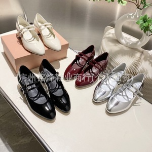 高定2025早秋新款时髦气质真皮圆头一字带玛丽珍鞋浅口粗跟单鞋女