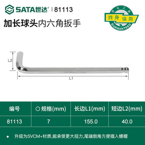 世达超硬内六角扳手单个1.5/2/2.5/3/4/5/6/7/8/10/12/14/17mm