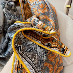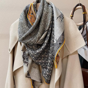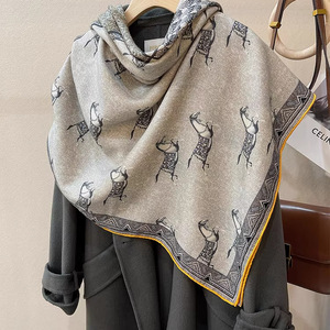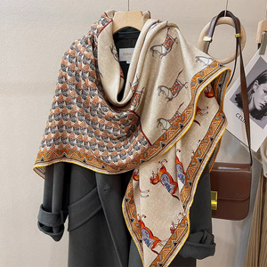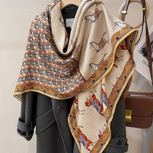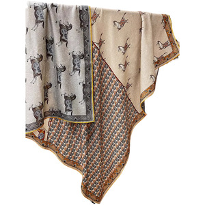 桑蚕丝真丝羊毛135丝毛混纺四格骏马方巾女夏季双面异色高端丝巾