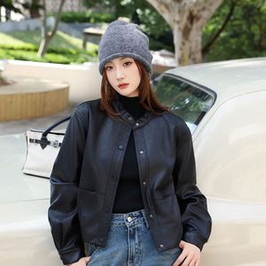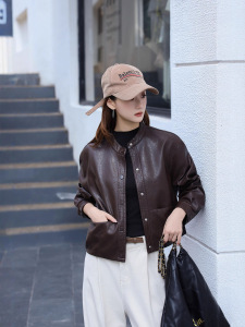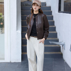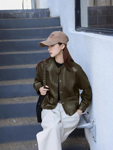 秋季新款复古帅气机车风皮衣外套女帅气立领短款水洗PU皮夹克