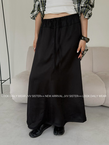 JVV十三行2025秋季新款气质显瘦A字长裙子缎面高腰半身裙女71262
