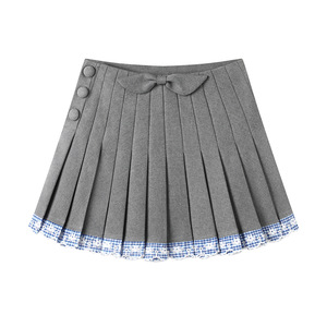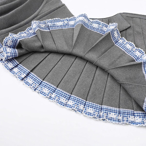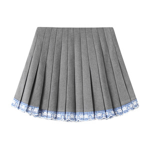 YY-LF25Q31SS295-格子花边拼接百褶半身裙