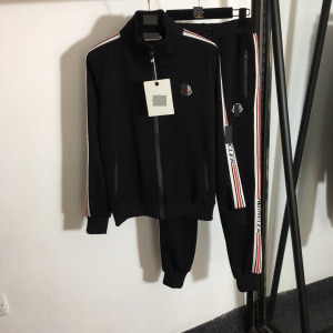 新款logo徽章字母织带拼边立领长袖夹克外套+松紧腰束脚休闲卫裤