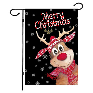 跨境圣诞节庭院装饰旗帜圣诞老人小雪人驯鹿图案印花亚麻花园旗