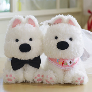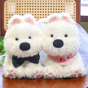 压床娃娃一对结婚奶萌小狗玩偶可爱西高地毛绒玩具礼物公仔送新人