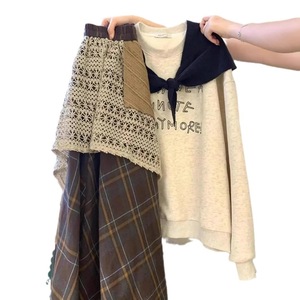 秋季套装2025新款慵懒风宽松圆领印花女长袖卫衣设计感高腰半身裙