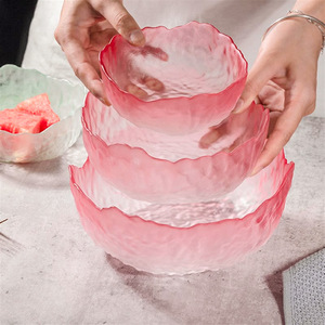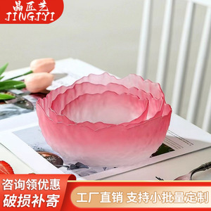 创意日式莲雾粉碗玻璃水果碗沙拉碗套装高级感轻奢家用甜品碗果盘