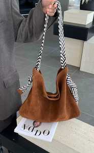 小众绒面包包女大容量单肩包休闲百搭手提单肩包通勤真皮托特包
