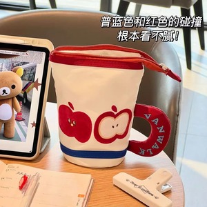 ins可爱苹果笔袋创意杯子笔袋高颜值学生大容量铅笔筒文具收纳袋