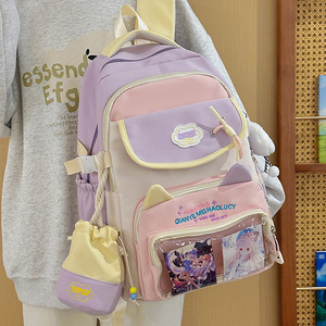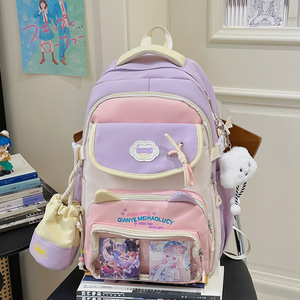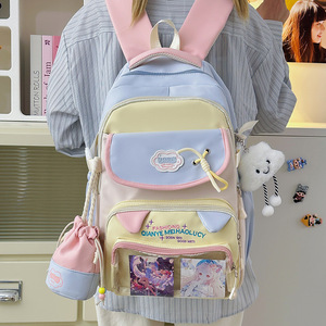 2025新款ins学院风撞色背包初高中学生书包女大容量高颜值双肩包