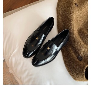 羊皮~英伦风圆头凯旋门小金扣乐福鞋女平底英伦懒人一脚蹬小皮鞋
