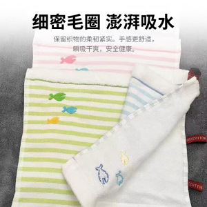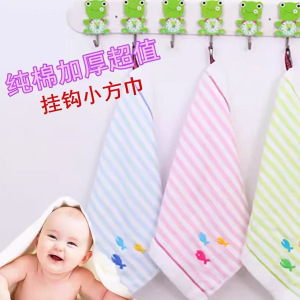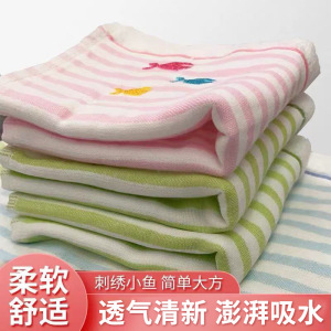 日系横条绣花棉小方巾幼儿园学校洗脸擦手四方毛巾小鱼刺绣口水巾