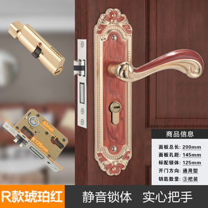 房门锁家用通用型卧室内门黑色锁具三件套静音老式门把手旧门换锁